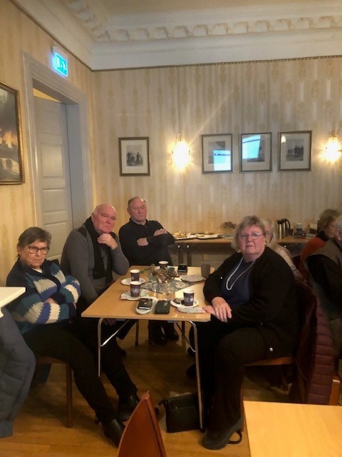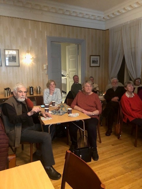 Hele 23 medlemmer hadde møtt fram i Kommandantboligen for å være med på årets første medlemsmøte. Coronaen hadde i siste øyeblikk satt en stopper for vårt planlagte foredrag. Det ble likevel en hyggelig kveld hvor improvisert quizing og vinlotteriet bidro til mye av underholdningen, og småprat rundt bordene med kaffe og kake skapte stemning og trivsel. Serveringen ble besørget av Bente og Erik mens Stig sto for loddsalget som både bidro til god stemning og godt overskudd.