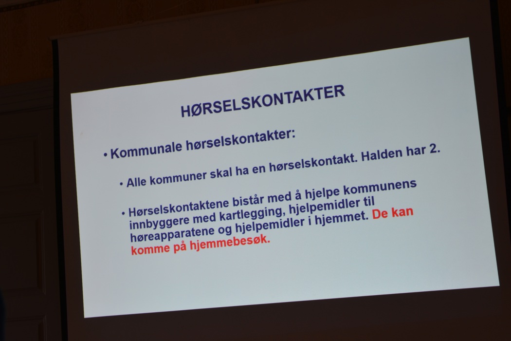 En av foreningens medlemmer, Bjarne Granli som også er sentralstyremedlem i Hørselshemmedes Landsforbund var foredragsholder denne kvelden. Han orienterte om HHLs tilbud og viste hvordan du ved å søke på nettet kan finne informasjon om din aktuelle hørsels hemning og den store mengde tilbud og løsninger som eksisterer på feltet høreapparater. For mange var det nytt at man her i Halden kommune faktisk har to kommunale hørselskontakter og lære om deres oppgaver. Både selve orienteringen og mange spørsmål konsentrerte naturlig nok om aktuelle hjelpemidler og hvordan komme i kontakt med hjelpemiddelsentral og annen støtte. Foredragsholderen kunne i løpet av kvelden glede seg over stor interesse fra flere om medlemskap i HHL.