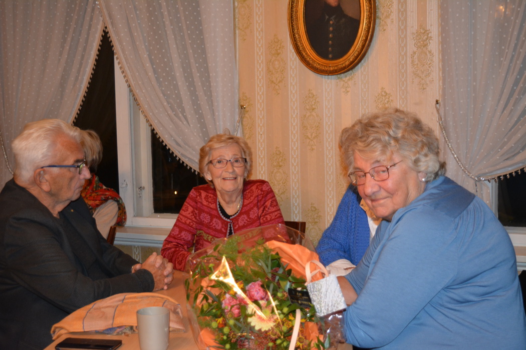 Etter foredraget ble det som vanlig kaffe og kringle med trivelig prat rundt bordene. Ekstra hyggelig denne gangen var overrekkelse av blomster til to 80 års jubilanter som hadde valgt å feire dagen på tur i utlandet.